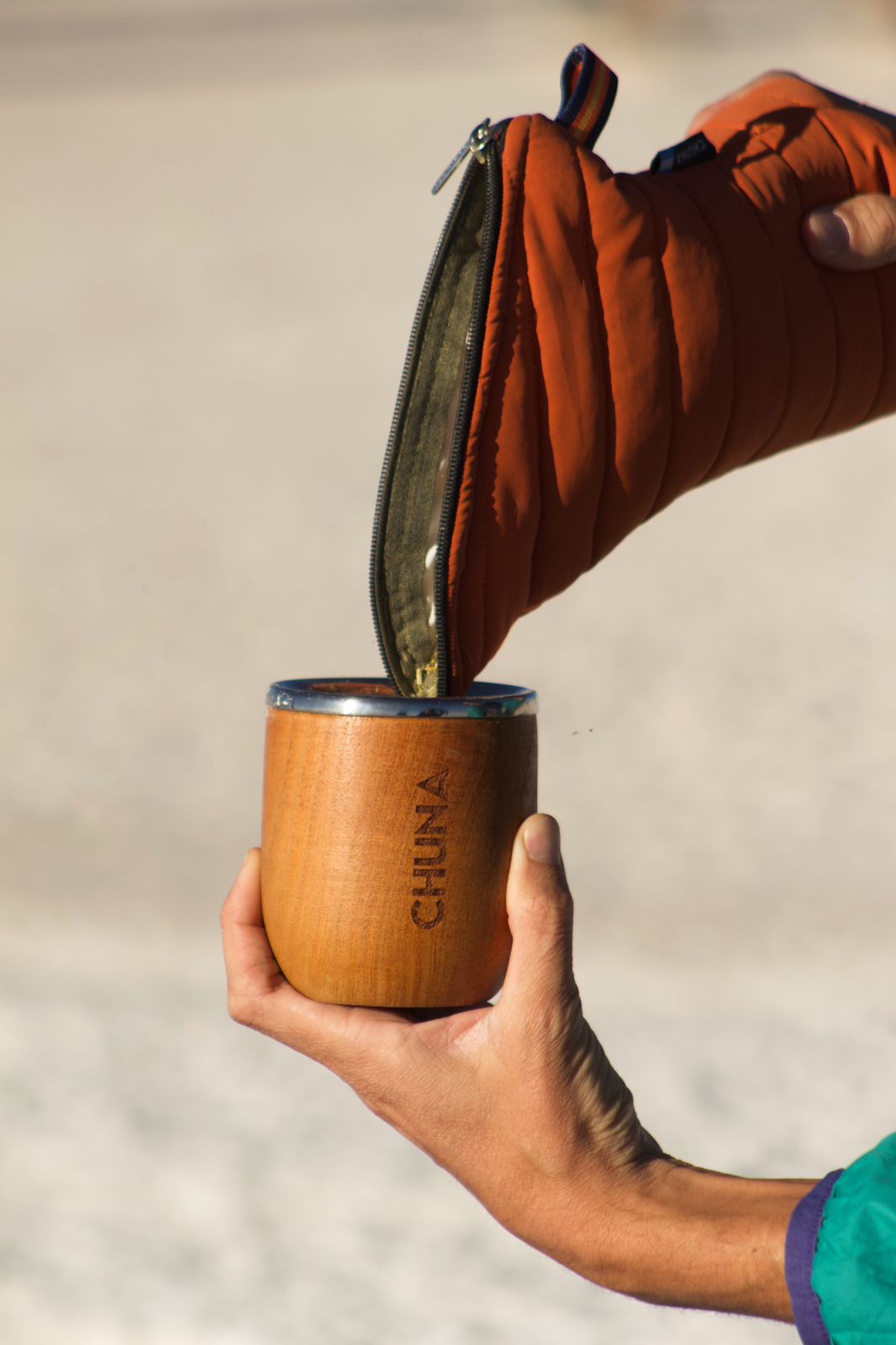 Por dentro es de una tela impermeable, y tiene un sistema de cierre anti-vuelco.